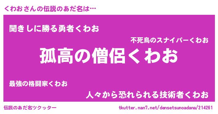 | 意味不明あだ名 | 『とにかく怪しいくわお』 |