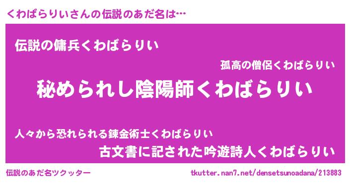| ファンタジー風あだ名 | 『エターナルクワバラリイー』 |