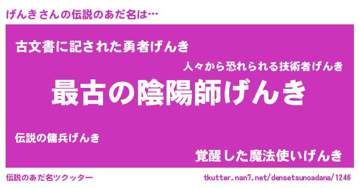 | 男性向けラノベタイトル風あだ名 | 『うちの娘の為ならば、俺はもしかしたらげんきも倒せるかもしれない。』 |