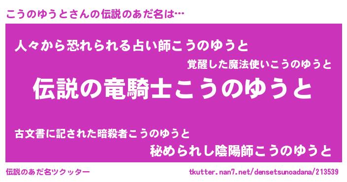 | ヒーロー風カッコイイあだ名 | 『スーパーコウノユウト』『仮面コウダー』 |