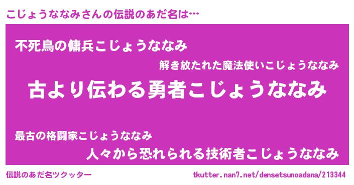 | 胡散臭い通販商品みたいなあだ名 | 『来世でも幸せになれる水素水…その名も「こじょうななみ」』 |