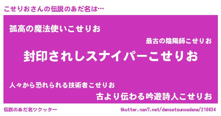 | 欧米人風あだ名 | 『こせりお・ステッグマイヤー』 |