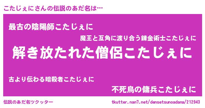 | 意味不明あだ名 | 『とにかく怪しいこたじぇに』 |