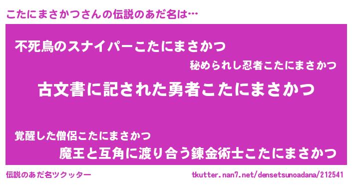 | 意味不明あだ名 | 『永久保存こたにまさかつ』 |