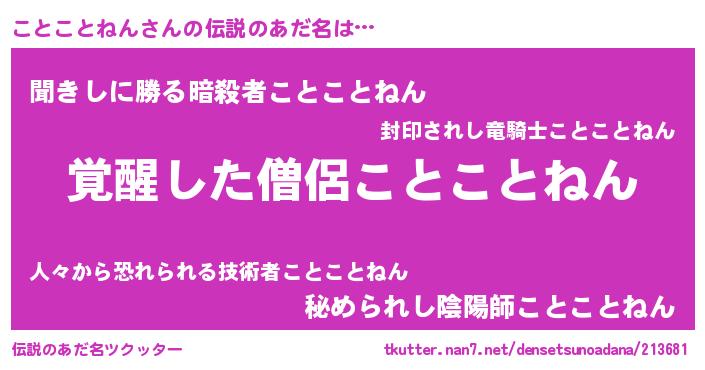 | ヘコむあだ名 | 『こと太郎』『ことことねん(爆)』 |