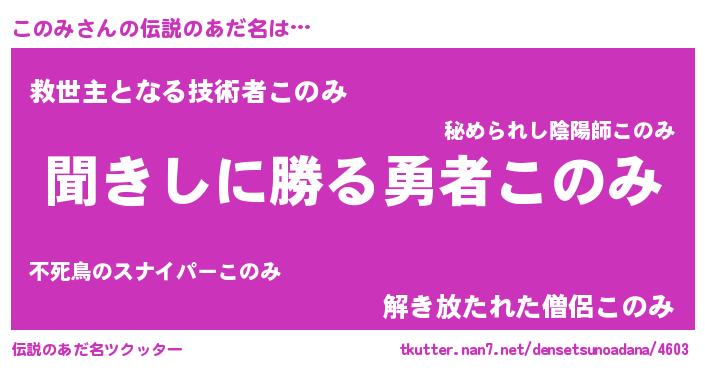 意味不明あだ名 | 『永久保存このみ』『自称このみ』 |