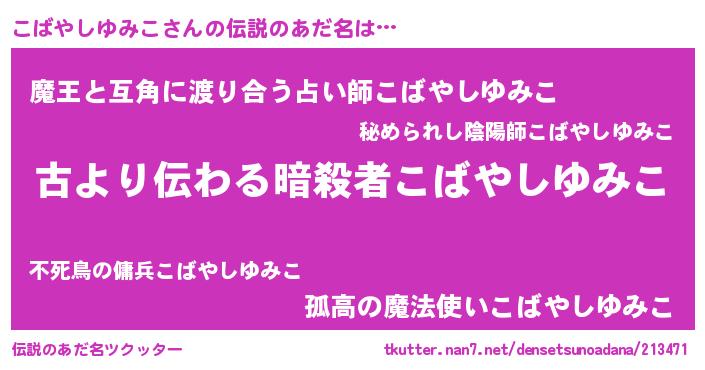 | ヘコむあだ名 | 『こばやしゆみこ(苦笑)』『こばっ子』 |