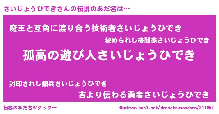 | 胡散臭い通販商品みたいなあだ名 | 『信頼と実績のペンダント…その名も「さいじょうひでき」』 |