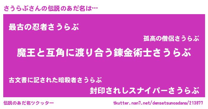 | 女子向けラノベタイトル風あだ名 | 『さうらぶ恋絵巻』『さうらぶ伯爵の花嫁』 |