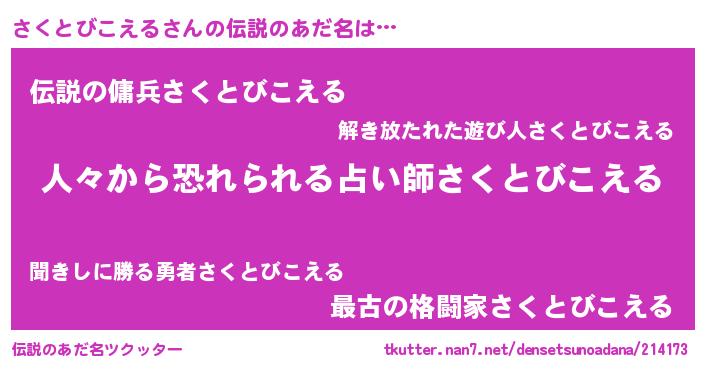 | 意味不明あだ名 | 『自称さくとびこえる』 |