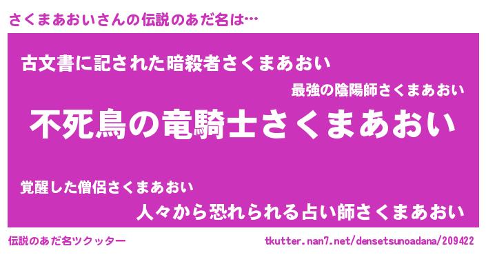 | ヒーロー風カッコイイあだ名 | 『スーパーサクマアオイ』『暗黒騎士サク』 |