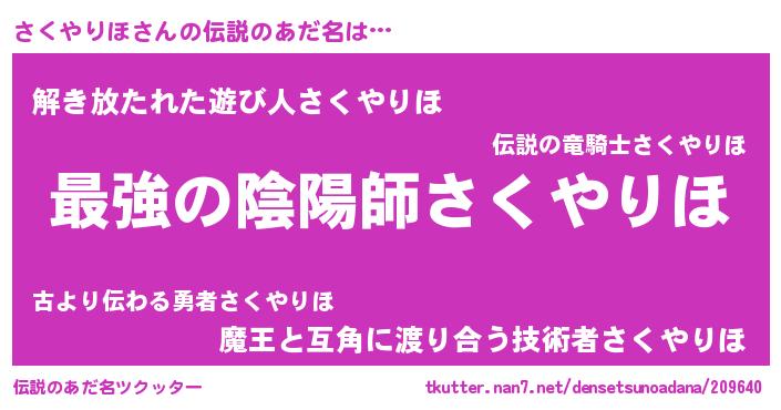 | ファンタジー風あだ名 | 『エターナルサクヤリホー』『サクフェル』 |