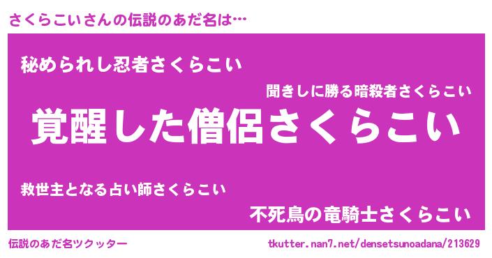 | 男性向けラノベタイトル風あだ名 | 『さくらこいの嫁は女の子じゃないと思った?』 |