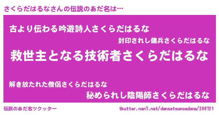 | ヒーロー風カッコイイあだ名 | 『慈愛の使者さくらだはるな』 |