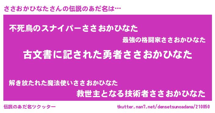 | ヘコむあだ名 | 『ささおかひなた(遠い目)』『ささっふぃ~』 |