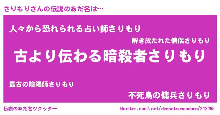 | ヒーロー風カッコイイあだ名 | 『ネオサリモリ』『友情の使者さりもり』 |