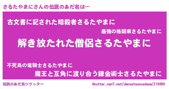 | 女子向けラノベタイトル風あだ名 | 『さるたやまにの卵を拾いまして』 |