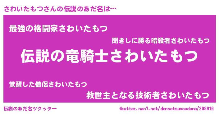 | 男性向けラノベタイトル風あだ名 | 『さわいたもつの憂鬱』 |