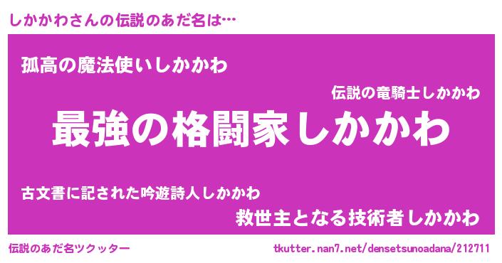 | 女子向けラノベタイトル風あだ名 | 『しかかわの婚約者』 |