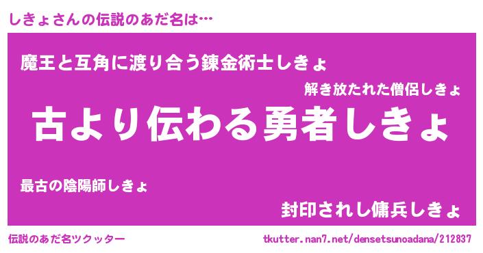 | 男性向けラノベタイトル風あだ名 | 『しきょという概念が存在しない退屈な世界 』 |