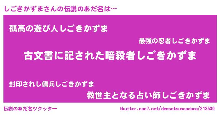 | ヒーロー風カッコイイあだ名 | 『ネオシゴキカズマ』『暗黒騎士シゴ』 |