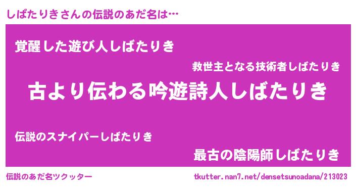 | 意味不明あだ名 | 『住所不定無職しばたりき(5歳)』 |