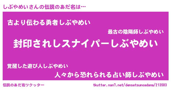 | 胡散臭い通販商品みたいなあだ名 | 『億万長者になれる霊験あらたかなお札…その名も「しぶやめい」』 |