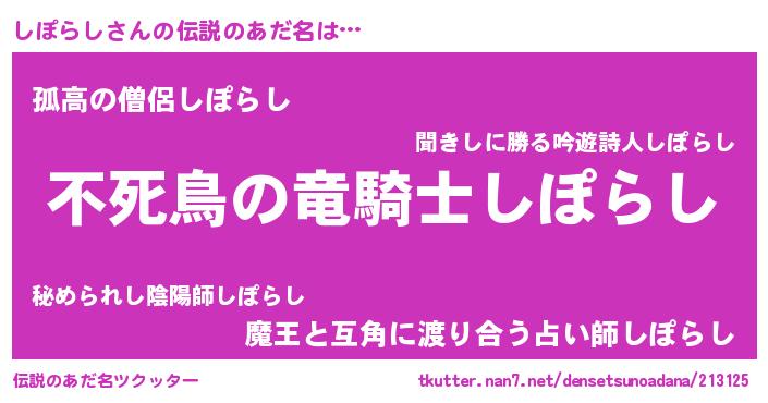 | ヒーロー風カッコイイあだ名 | 『仮面シポダー』『スーパーシポラシ』 |