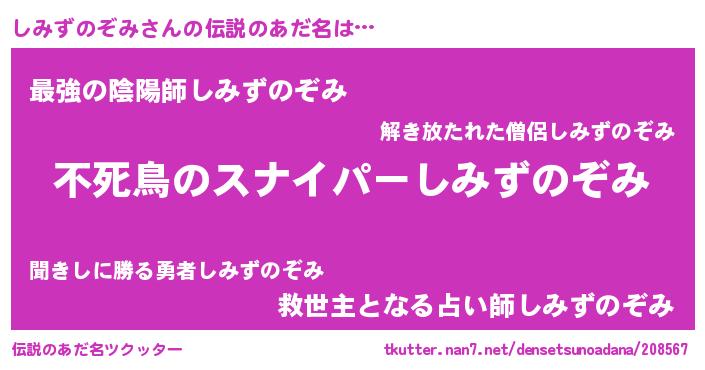 | ヒーロー風カッコイイあだ名 | 『スーパーシミズノゾミ』『暗黒騎士シミ』 |