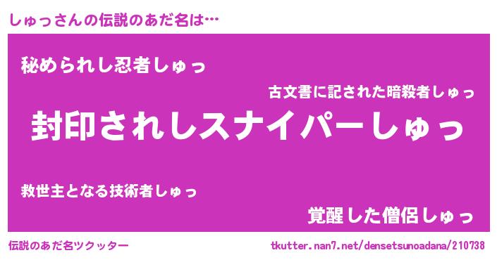 | 胡散臭い通販商品みたいなあだ名 | 『億万長者になれる霊験あらたかなお札…その名も「しゅっ」』 |