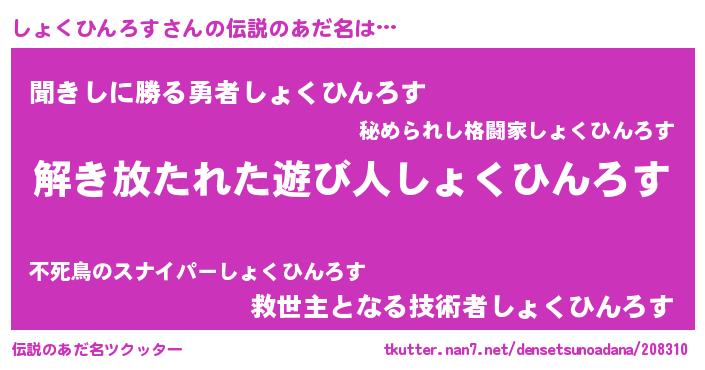 | ヒーロー風カッコイイあだ名 | 『銀牙騎士ショ』『仮面ショダー』 |