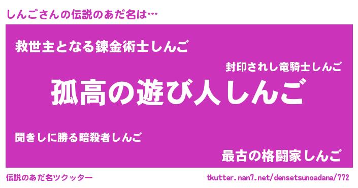 | 男性向けラノベタイトル風あだ名 | 『魔弾の王としんご』 |