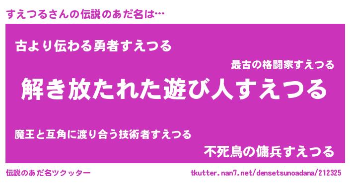 | 意味不明あだ名 | 『とにかく怪しいすえつる』 |
