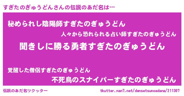 | 意味不明あだ名 | 『自称すぎたのぎゅうどん』 |