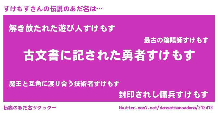 | ヘコむあだ名 | 『すけもす(遠い目)』『すけお』 |