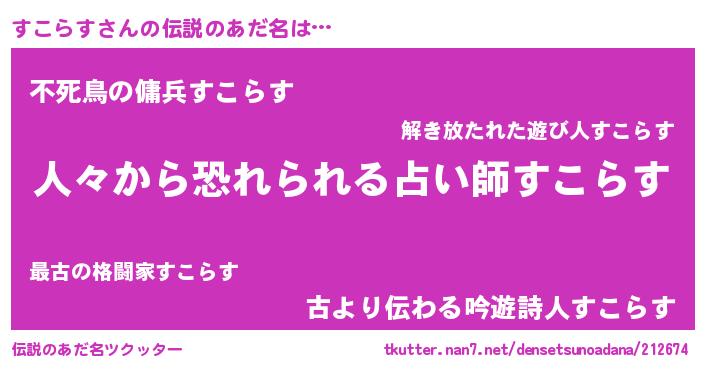 | ヘコむあだ名 | 『すこにゅー』『すこらす(苦笑)』 |