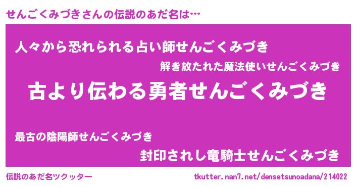 | ヒーロー風カッコイイあだ名 | 『仮面センダー』『ネオセンゴクミヅキ』 |