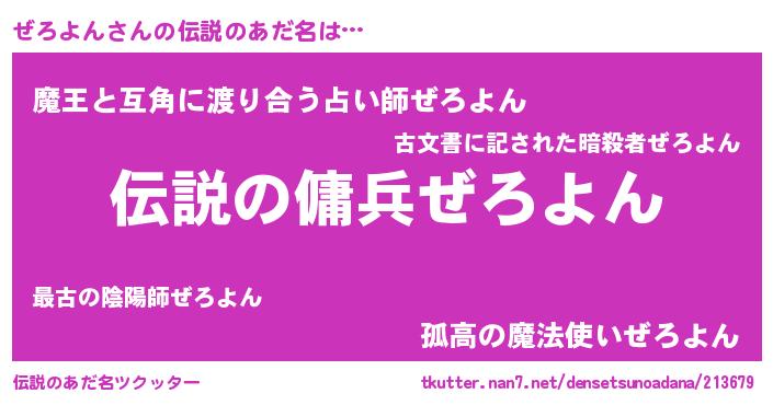 | 男性向けラノベタイトル風あだ名 | 『ぜろよんの憂鬱』『魔弾の王とぜろよん』 |