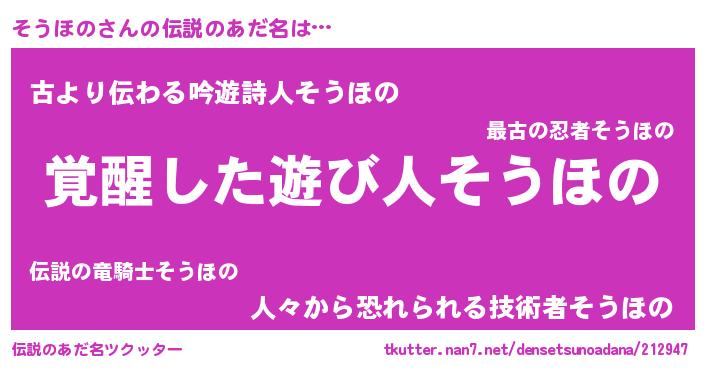 | ヘコむあだ名 | 『そうっちょ』『そうほの(笑)』 |