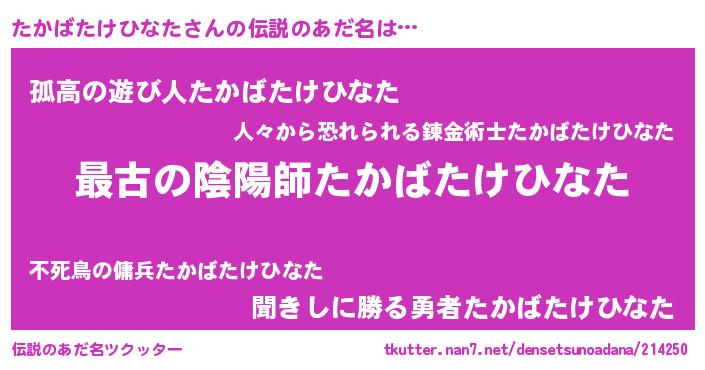 | ファンタジー風あだ名 | 『エターナルタカバタケヒナター』 |