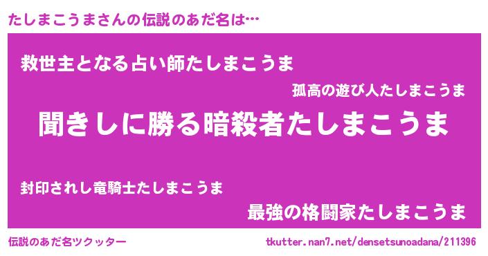 | 意味不明あだ名 | 『自称たしまこうま』 |