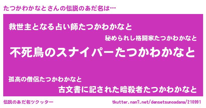 | 肩書あだ名 | 『たつかわかなと中将』 |