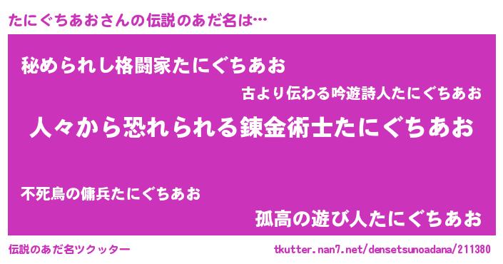 | 胡散臭い通販商品みたいなあだ名 | 『ガンによく効く冬虫夏草…その名も「たにぐちあお」』 |