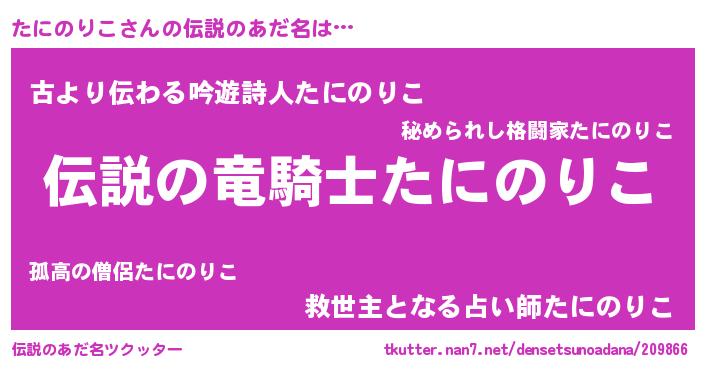 | 胡散臭い通販商品みたいなあだ名 | 『必ず成功するブレスレット…その名も「たにのりこ」』 |