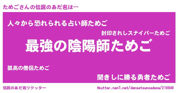 | 意味不明あだ名 | 『ためごフォーエバー』『自称ためご』 |