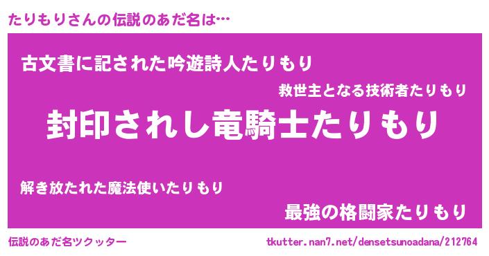 | ヘコむあだ名 | 『たりにー』『たりもり(小並感)』 |