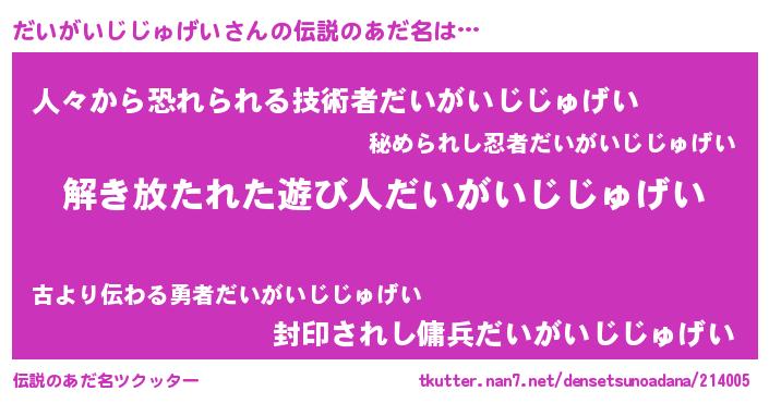 | 意味不明あだ名 | 『とにかく怪しいだいがいじじゅげい』 |