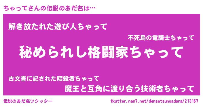 | ヒーロー風カッコイイあだ名 | 『ウルトラ戦士チャッテ』『仮面チャダー』 |