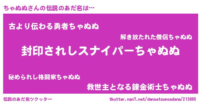 | 意味不明あだ名 | 『ペロリンちゃぬぬ』『永久保存ちゃぬぬ』 |