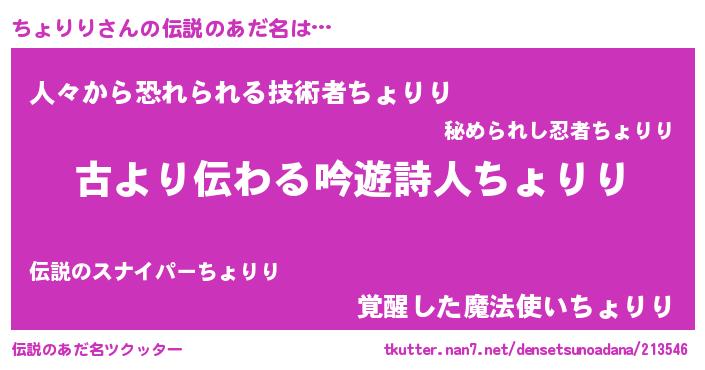 | ヘコむあだ名 | 『ちょりり(笑)』『ちょお』 |